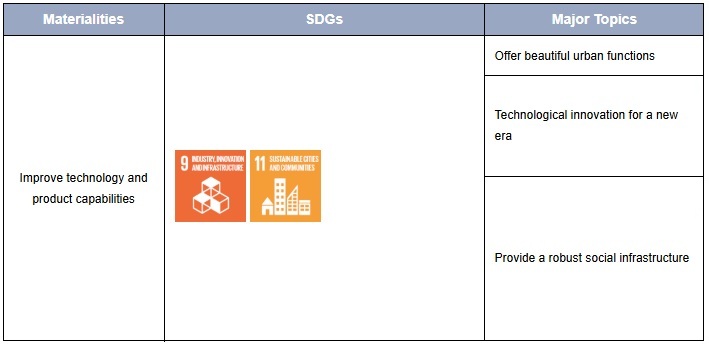 Fujitec promotes six (6) themes of the Materiality set under the company’s sustainability policy that the implementation of our management philosophy leads to the coexistence of society and nature as well as the realization of our sustainable society. Posting ‘Improve technology and product capabilities’ as one theme of Materiality, Fujitec is proceeding with three major topics: ‘Offer beautiful urban functions,’ ‘Technological innovation for a new era,’ and ‘Provide a robust social infrastructure.’ The elevators with the brand of ‘Elĕ Glance’ are the products that embody this theme of Materiality.