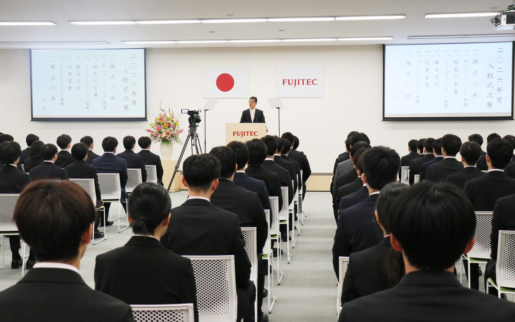 On this day of beautiful blue sky and warm spring weather, I am delighted to welcome 111 brand-new recruits into the “All Fujitec” community. On behalf of all the employees who make up this community, I would like to express my heartfelt congratulations and appreciation to you for joining Fujitec.