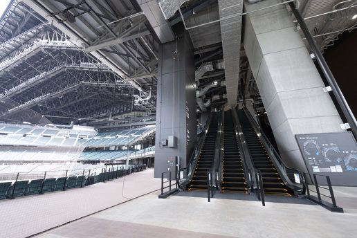 Fujitec delivered thirteen (13) elevators and fourteen (14) escalators here. The escalators are designed to be used by a large number of spectators in a short period of time and have a "heavy load specification" with twice the load strength of a normal escalator. The goal was to create a barrier-free stadium and design a smooth flow to ensure safe and smooth movement of the audience.