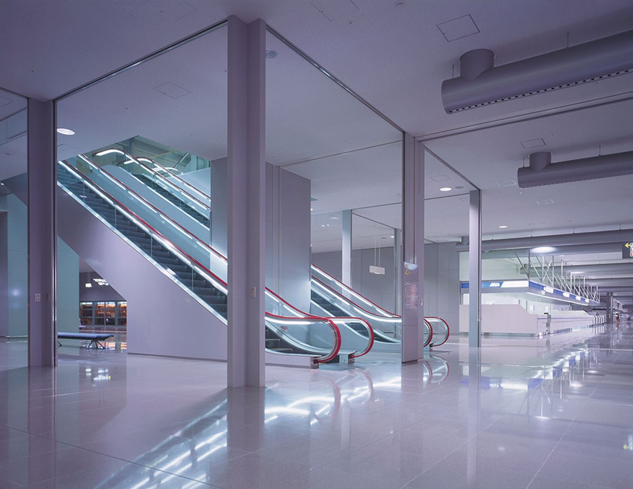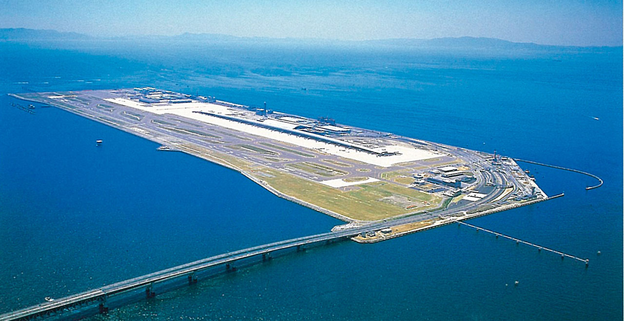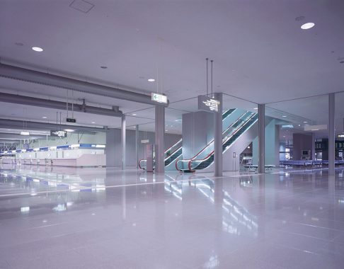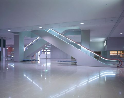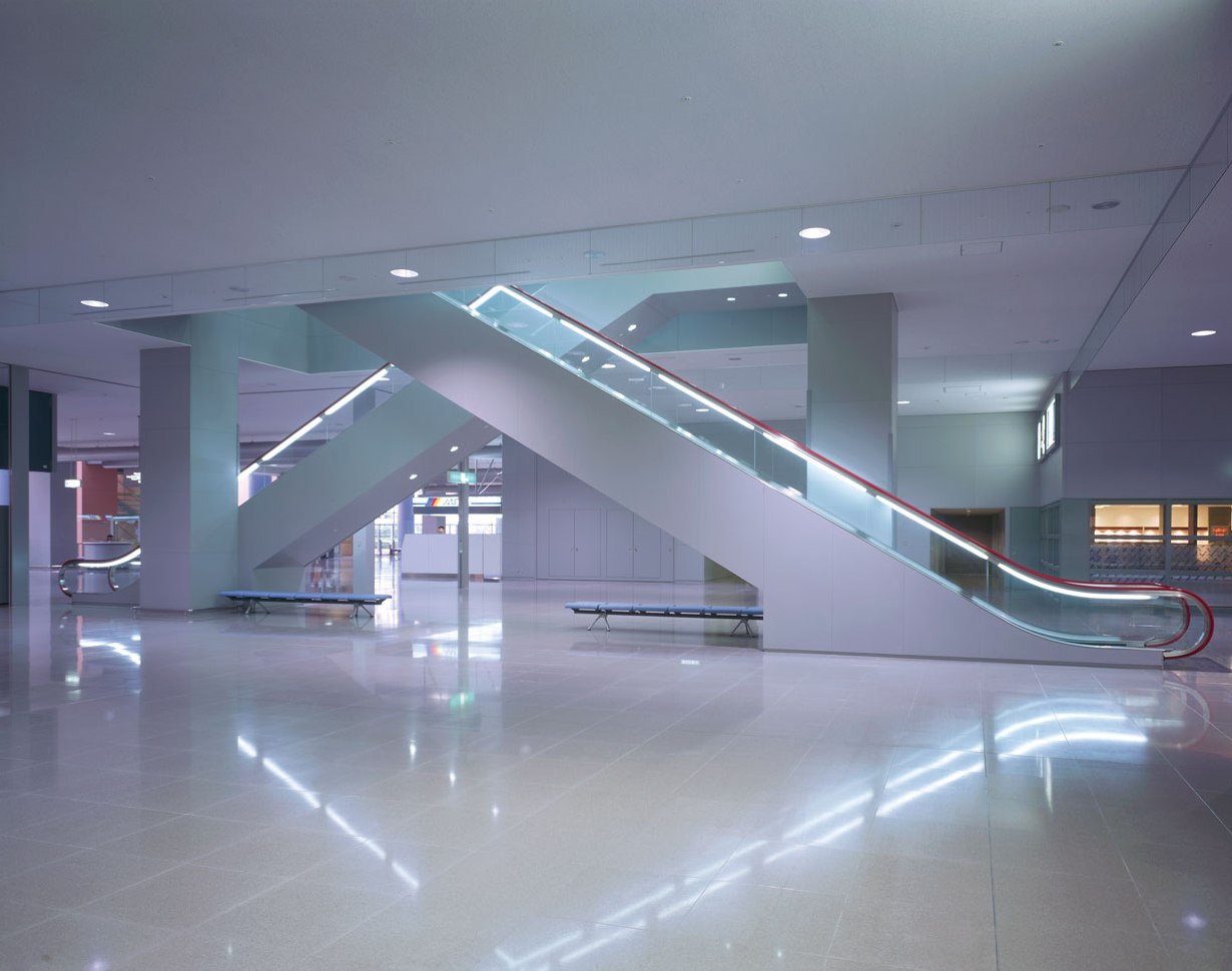 Located in southeast Osaka Bay, the Kansai International Airport is the first major 24-hour airport in Japan to operate on a man-made island. Fujitec installed a total of 35 elevators and 26 escalators in the airport buildings including this terminal, as well as the Airport Administrative Facility and Kansai Airport Station.