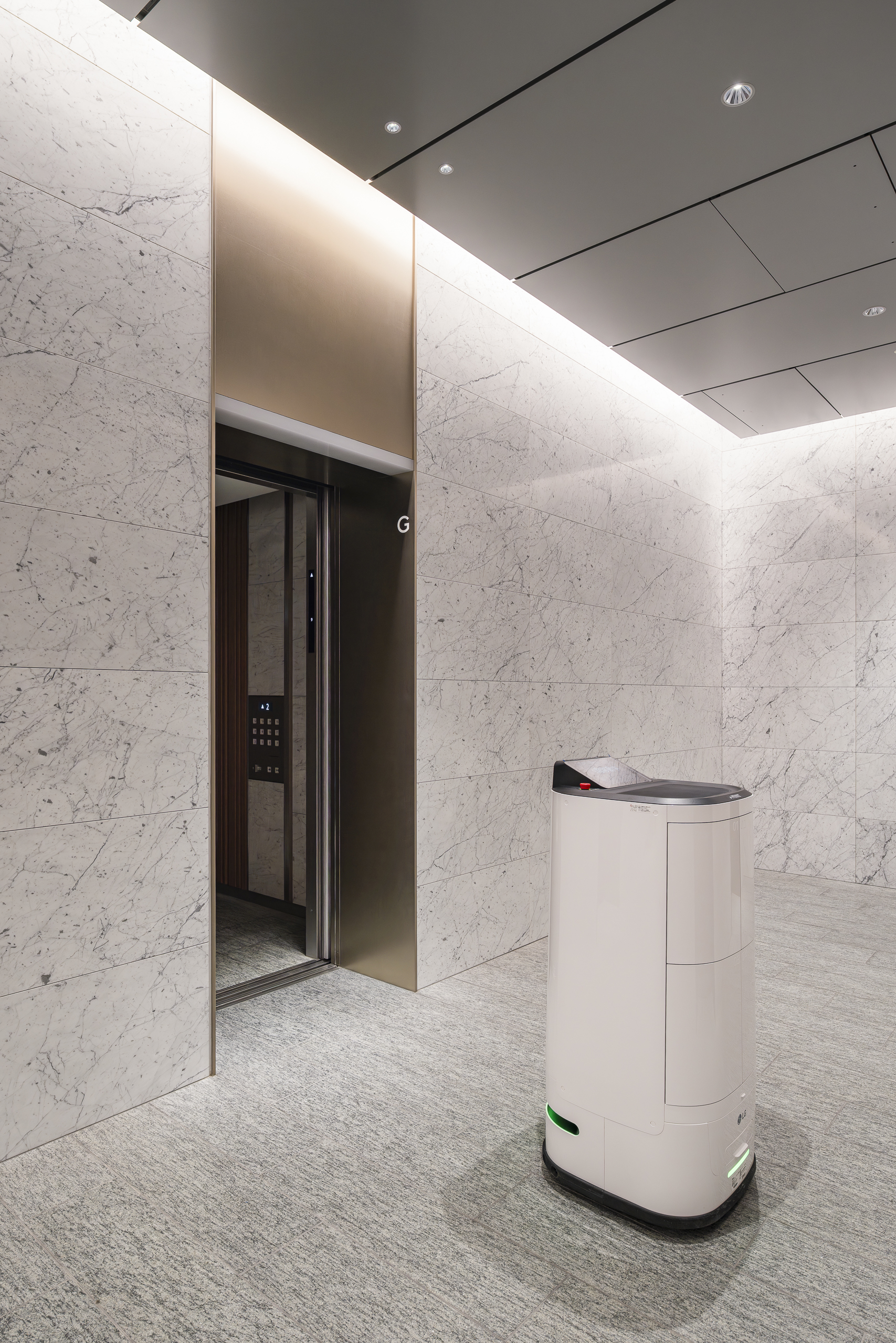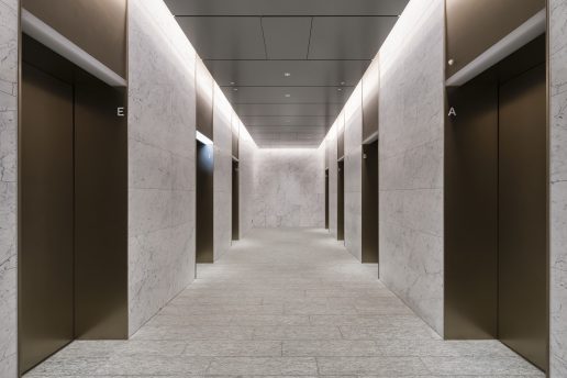 The elevators feature specifications enabling autonomous movement in coordination with service robots for security, cleaning, and delivery. Additionally, fifty-four (54) -person shuttle elevators effectively alleviate congestion during office rush hours.