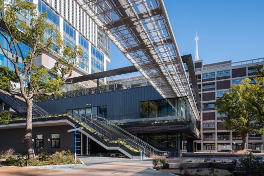Located in front of JR Kannai Station and directly connected to Yokohama Stadium, the large-scale mixed-use complex “BASEGATE Yokohama Kannai” integrates a hotel, live-viewing arena, retail, and office spaces.