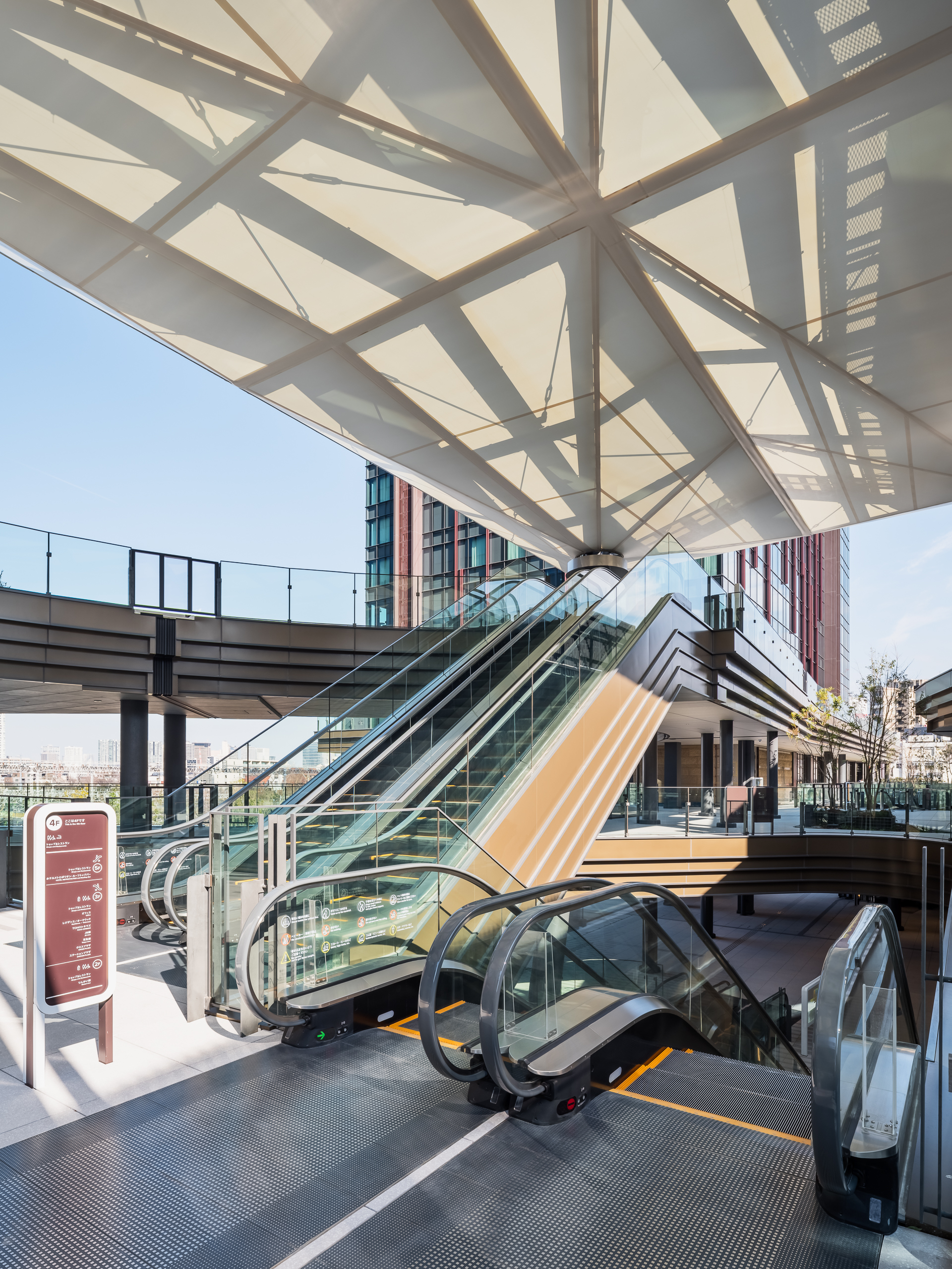 Furthermore, an observation elevator is positioned on the station plaza side, creating a three-dimensional transportation space that connects with the city.